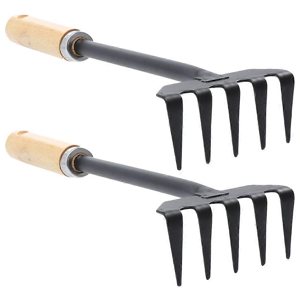 Garden Hand rake for Gardening Use with Ergonomic Wood Handle and Iron Material 2 Pieces Small Size