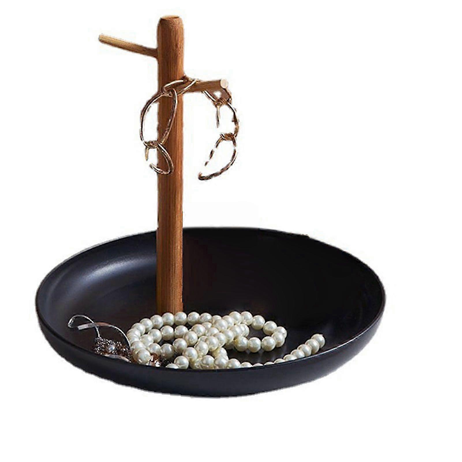 Round Table Storage Tray with Shelf Smooth Surface Easy Clean Desk Organizer for Living Room Bedroom Black