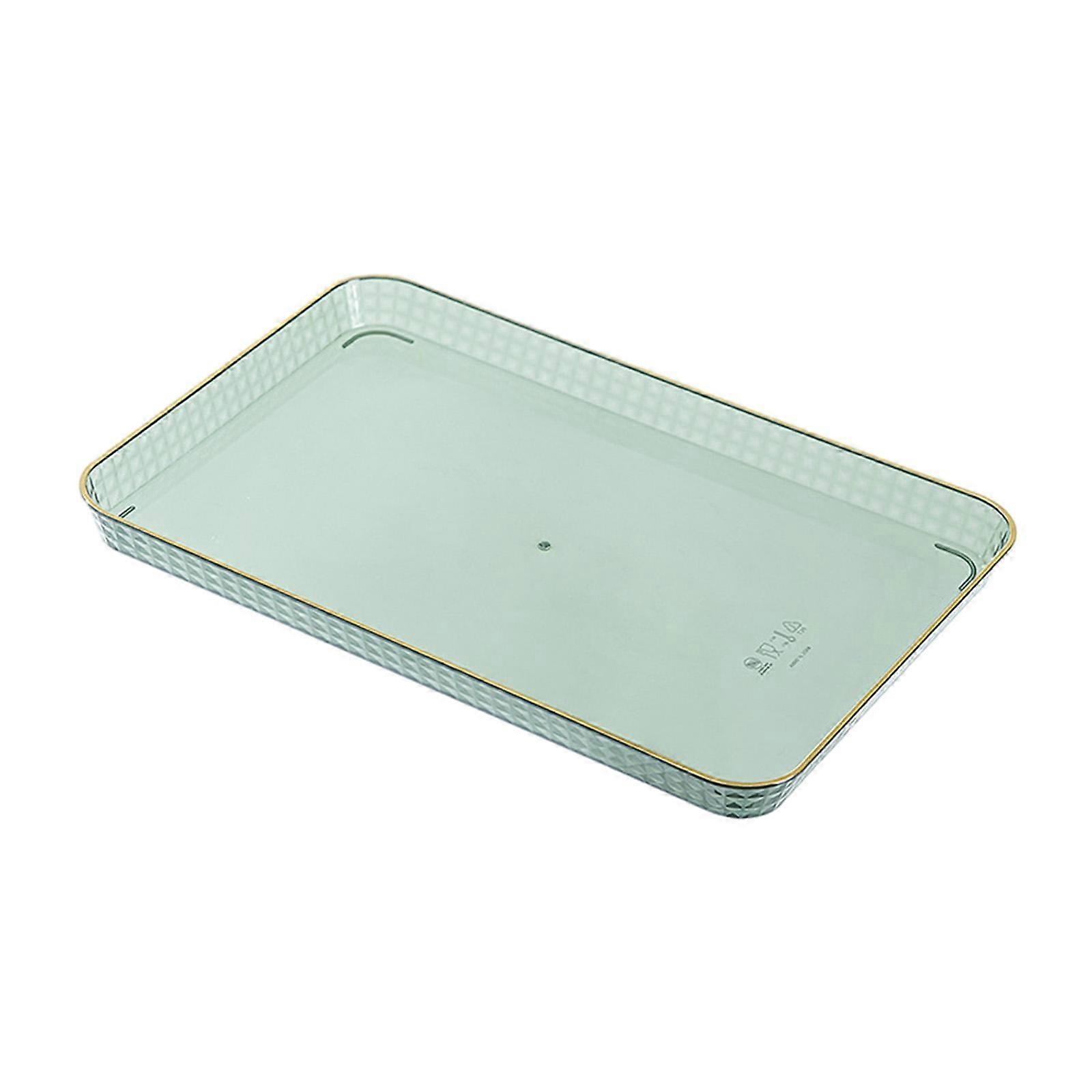 Description: 【Minimalist 】: This kitchen serving tray features a texture design, easy to clean, and a minimalist gold edged tray. Its versatile can blend with any decor. 【Durable Material】: The cosmetics tray is made of high quality PET material, which is transparent, high in hardness, and wear resistant. Its elevated design makes it easy to carry, and the edges are polished smooth to ensure secure during use. 【Multipurpose】: The breakfast tray can hold cups and teapots, making it perfect for entertaining guests. It offers stylish coffee or tea serving options and can be used as a jewelry tray, cosmetic storage box, coffee table tray, candle plate, biscuit display stand, pastry display stand or tea plate. 【Features】: The countertop makeup tray is waterproof and oil resistant. Its polished surface provides glossiness and is easy to clean. It can be folded for storage saving space,ideal for small space or cluttered countertops. 【Application】: Use the decorative tray in the kitchen or bedroom among other places; its large capacity storage design can accommodate various items keeping your space neat and orderly. Size Chart: 36.5cmx25.5cmx2.7cm/14.37inchx10.04inchx1.06inch Package Includes: 1 Serving Tray  Note: Please allow slightly errors due to manual measurement and different monitors.
