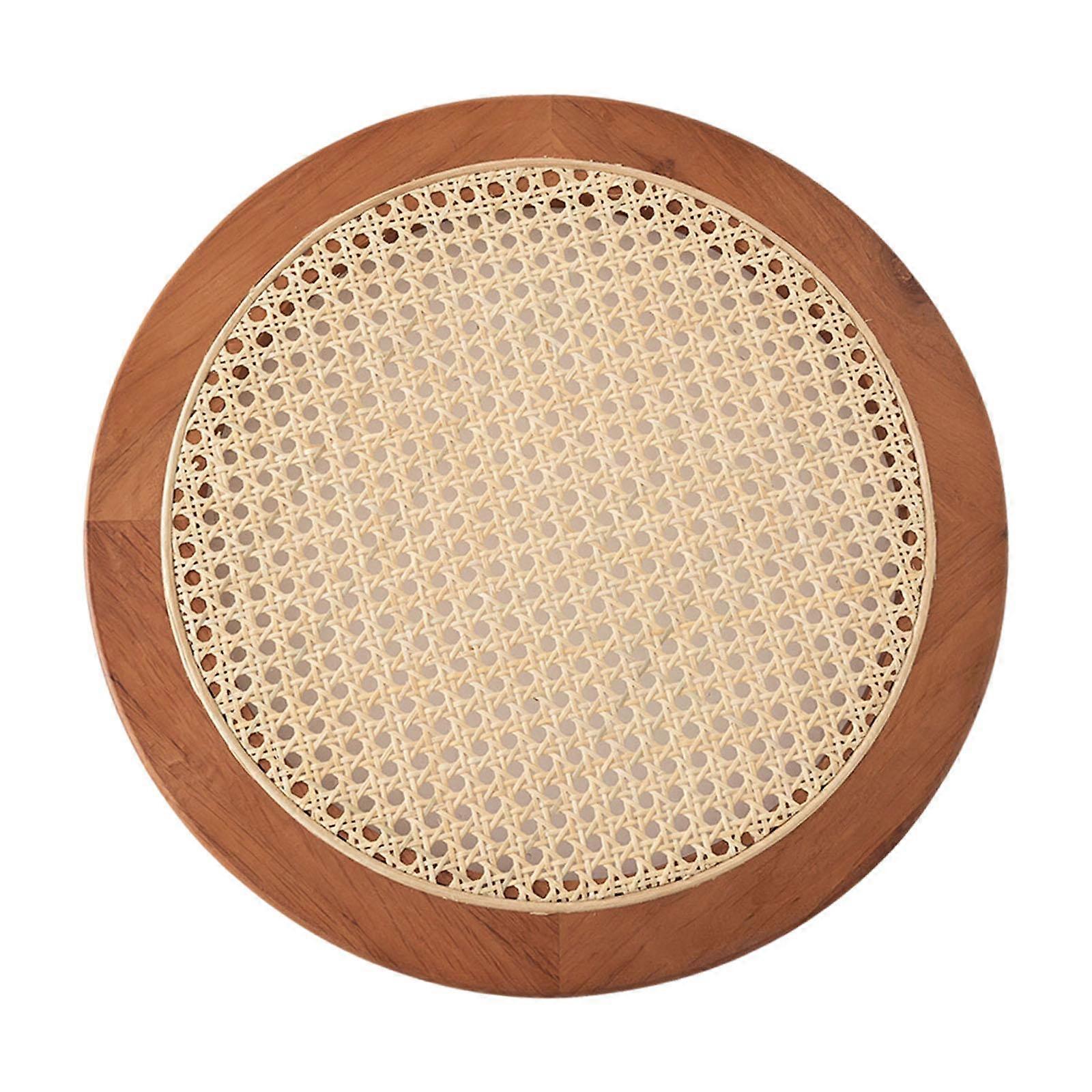 Rattan Serving Tray Round Cake Dish Dining Room Organizer Guest Room Storage Wood Color
