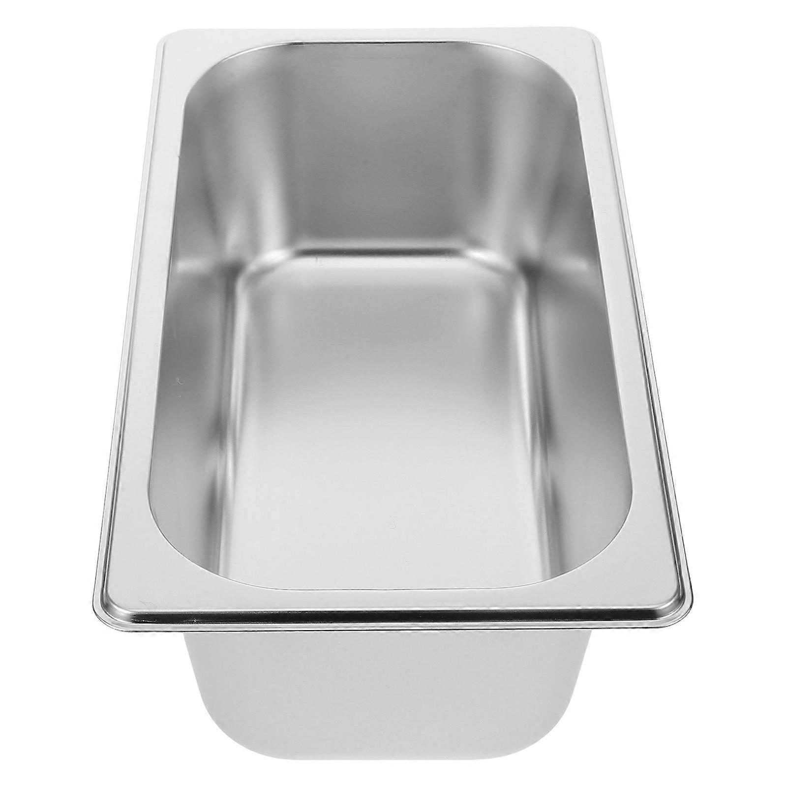 This food pan is made of sturdy material to be used for long time. The simple design of this food holder makes it highly practical to store food, snack, dessert, fruits or other things. The buffet pan will not easy to get deformed or broken, you can use with peace of mind. Features -Color:Silver -Material:Stainless steel -Size:32.40X18.50X10.00cm/12.73X7.27X3.93in -Capacity: About 3.6L(1/3 size of the whole pan size) - Made of sturdy materials, features with stability and durability, this hotel pan is not easy to deform or break, can be used for long time - The buffet pan is lightweight, easy for you to hold, you can take it to anywhere you want easily. - This food tray is with large capacity, can help you to store food, snack, dessert, fruits or other things, fit your demands. - With a smooth surface, easy to clean, this food tray can save you time and efforts in the kitchen. - Practical buffet pan can be used at home, in the kitchen, cafeteria, hotel and more places you want. Package list: 2 x Food Pan