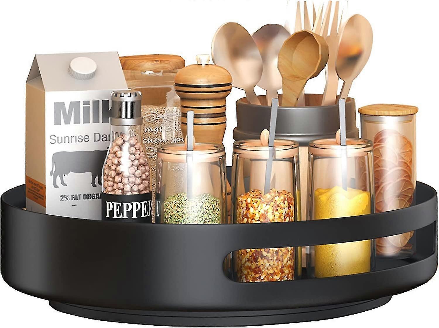 Revolving Tray, Metal Steel Revolving Spice Rack, Kitchen Revolving Spice Rack For Kitchen Spices Storage, Cupboard Storage, 25.4 Cm, Black