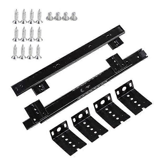 Features: High-quality material, thick layer, durable, corrosion-resistant, can be used for a long time Wide application range - suitable for your desk, cabinets, furniture hardware, kitchen boxes, keyboard trays, tool organizers, office file organizers, retail displays, and more Humanized detailed design, equipped with steel bearings and cushions to ensure smooth sliding of the panels, reduce noise, and achieve quiet performance Adjustable 6-hole height to meet different users' height requirements more comfortably Easy to install - takes only a few minutes to install the panels Package includes: 1 pair of keyboard sliding panels Specification: Material: Iron Size: As shown in the image Color: Black Note: Allow 1-2 cm error due to manual measurement Due to differences in display screens, the image may not accurately reflect the actual product color