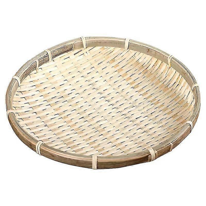 Natural Handmade Woven Bamboo Basket Tray Bulk Food Flat Shallow Basket