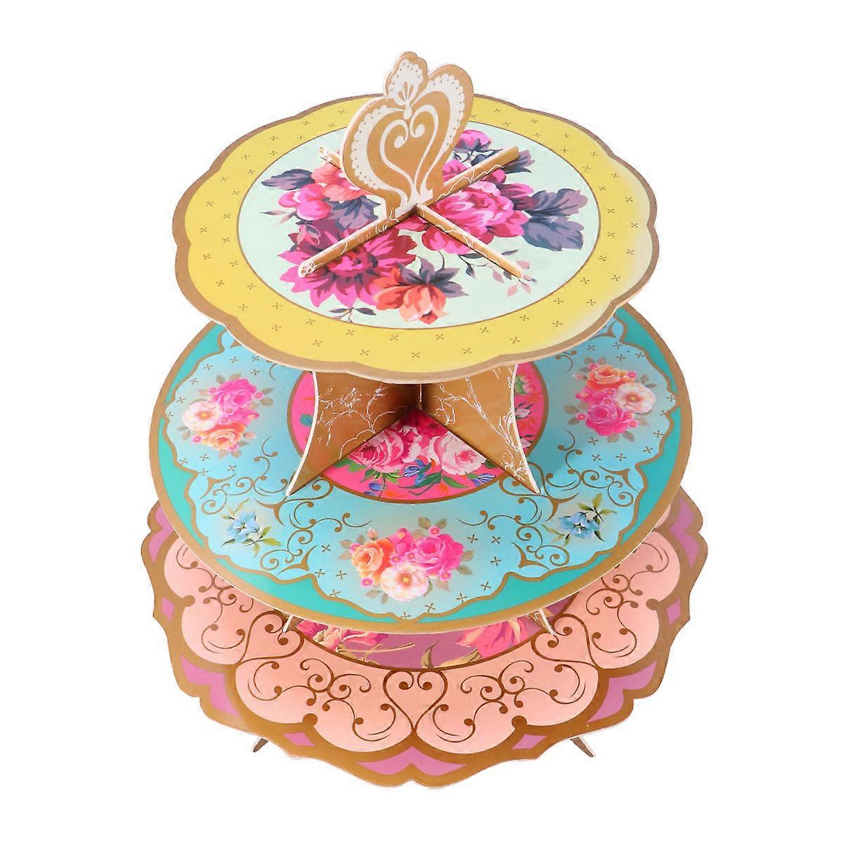 Paper Cake Tray Birthday Party Supplies European Style Flower Shape Dessert Storage Stand 24.6x24.6x51cm 1Set
