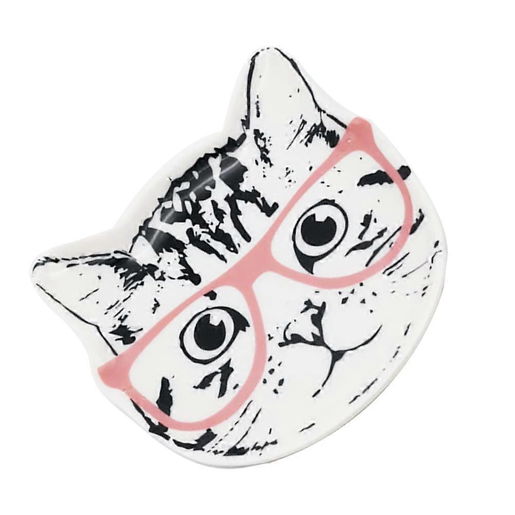 Cat Shape Nordic Style Ceramic Tray For Indoor Decoration Assorted Color 12.5x10.5cm Jewelry Holding 1Set