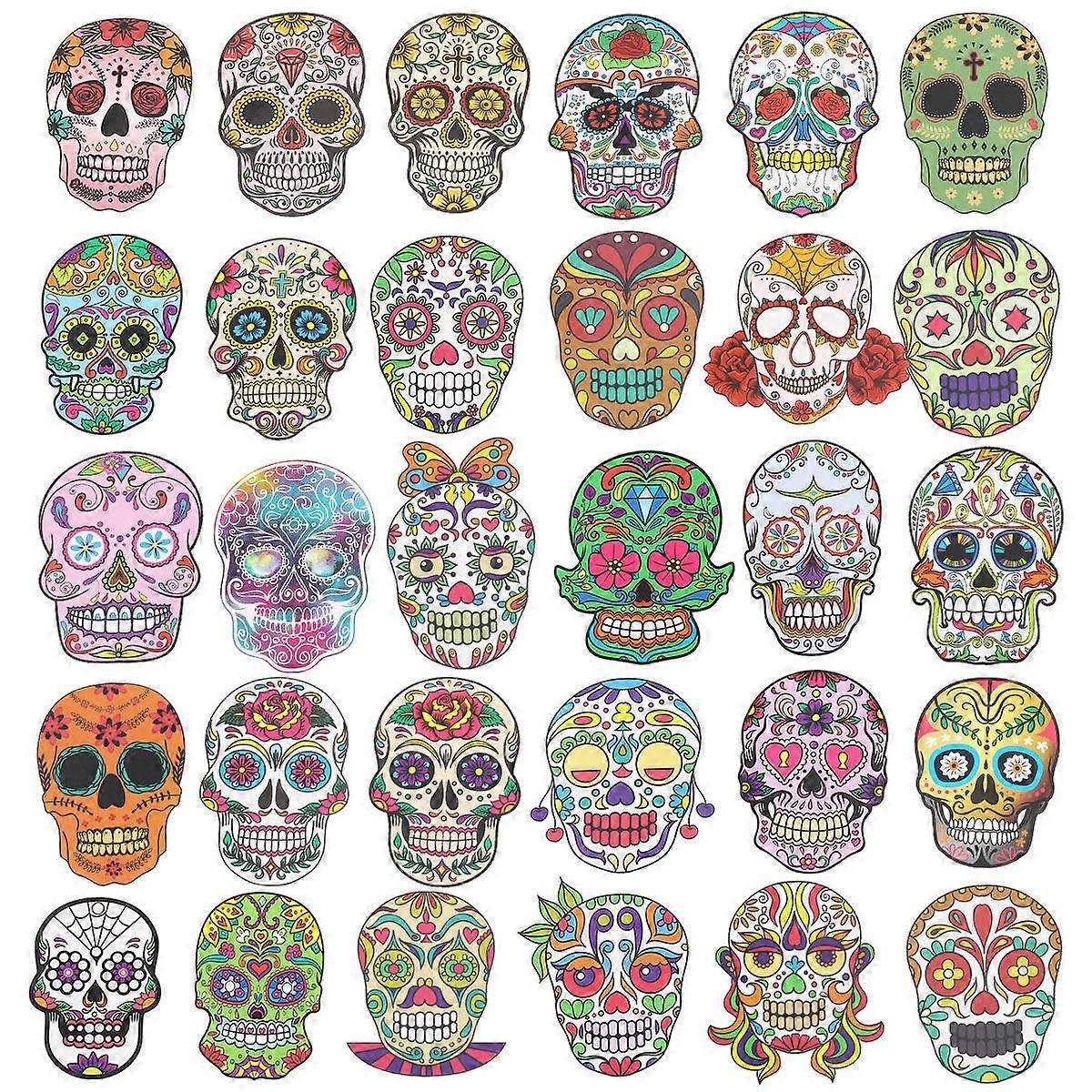 Graffiti Stickers Skull Shape Assorted Color 6x5cm PVC Material Halloween Luggage Decoration Easy to Apply and Remove 60Pcs