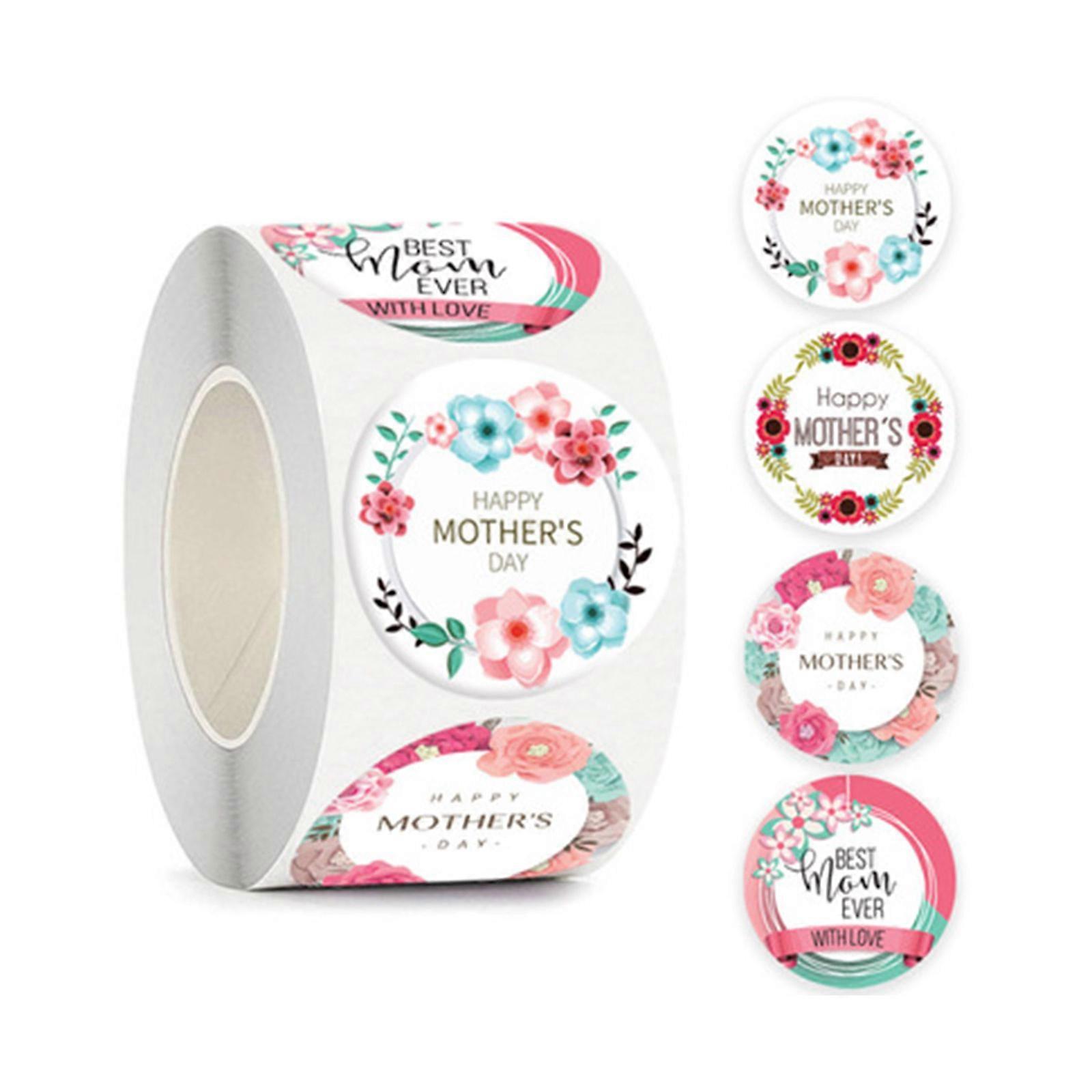 Happy Mother's Day Stickers 500pcs/roll 3.8cm/2.5cm Diameter Art Flower Tag