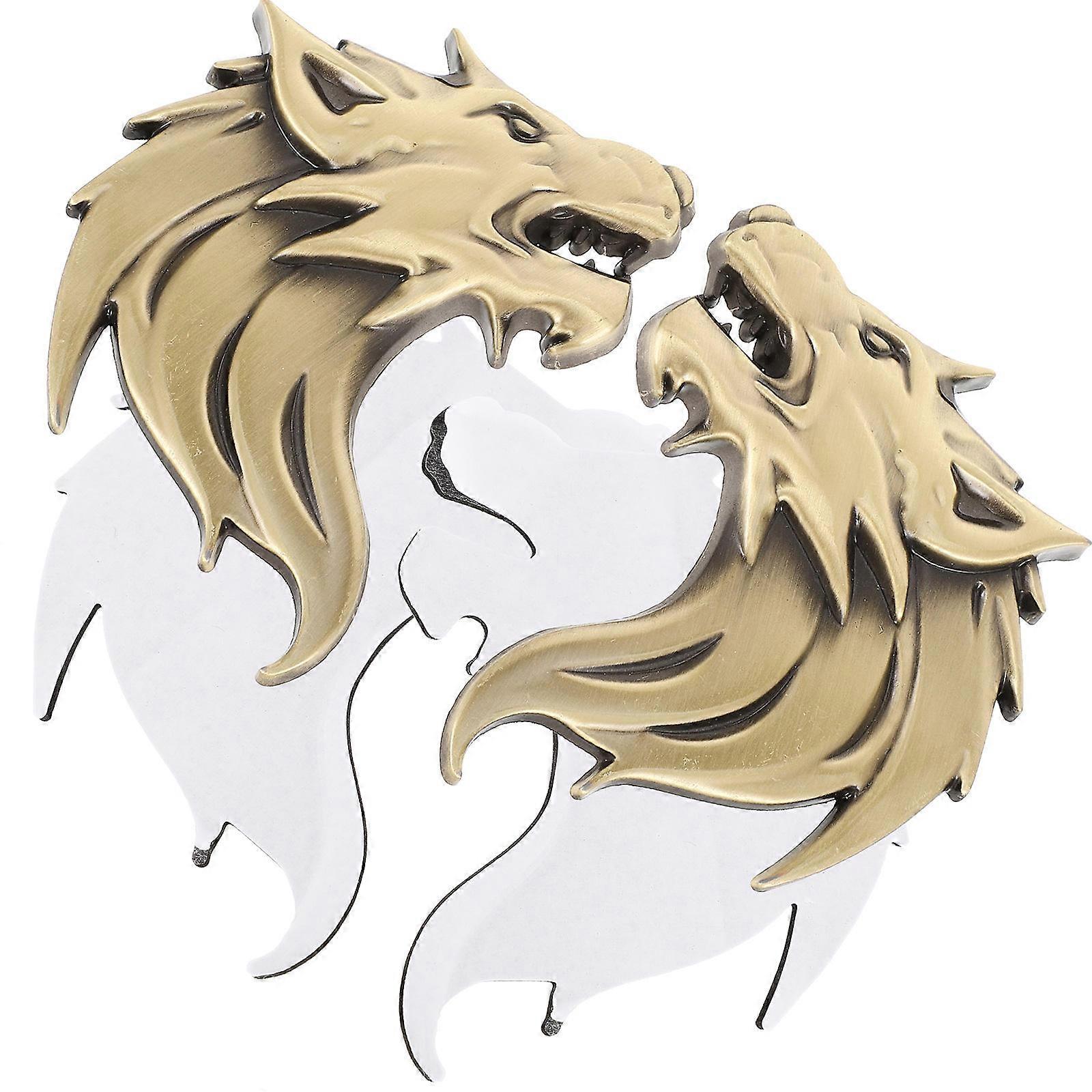 Metal Car Decals 3D Wolf Head Sticker Stylish and Dynamic Vehicle Accessories Copper 7 x 6 x 1 cm Waterproof 2Pcs