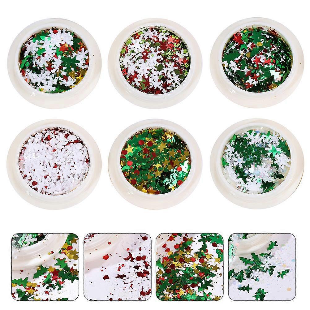 Christmas Nail Stickers with Sequin for Decor Assorted Color 6 Bottles Ideal for DIY