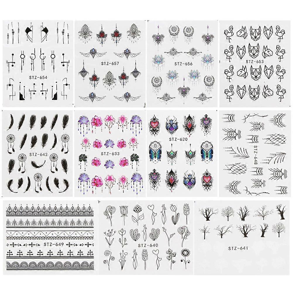 Printed Nail Stickers Watermark Nail Art Sticker for 24Pcs Assorted Color