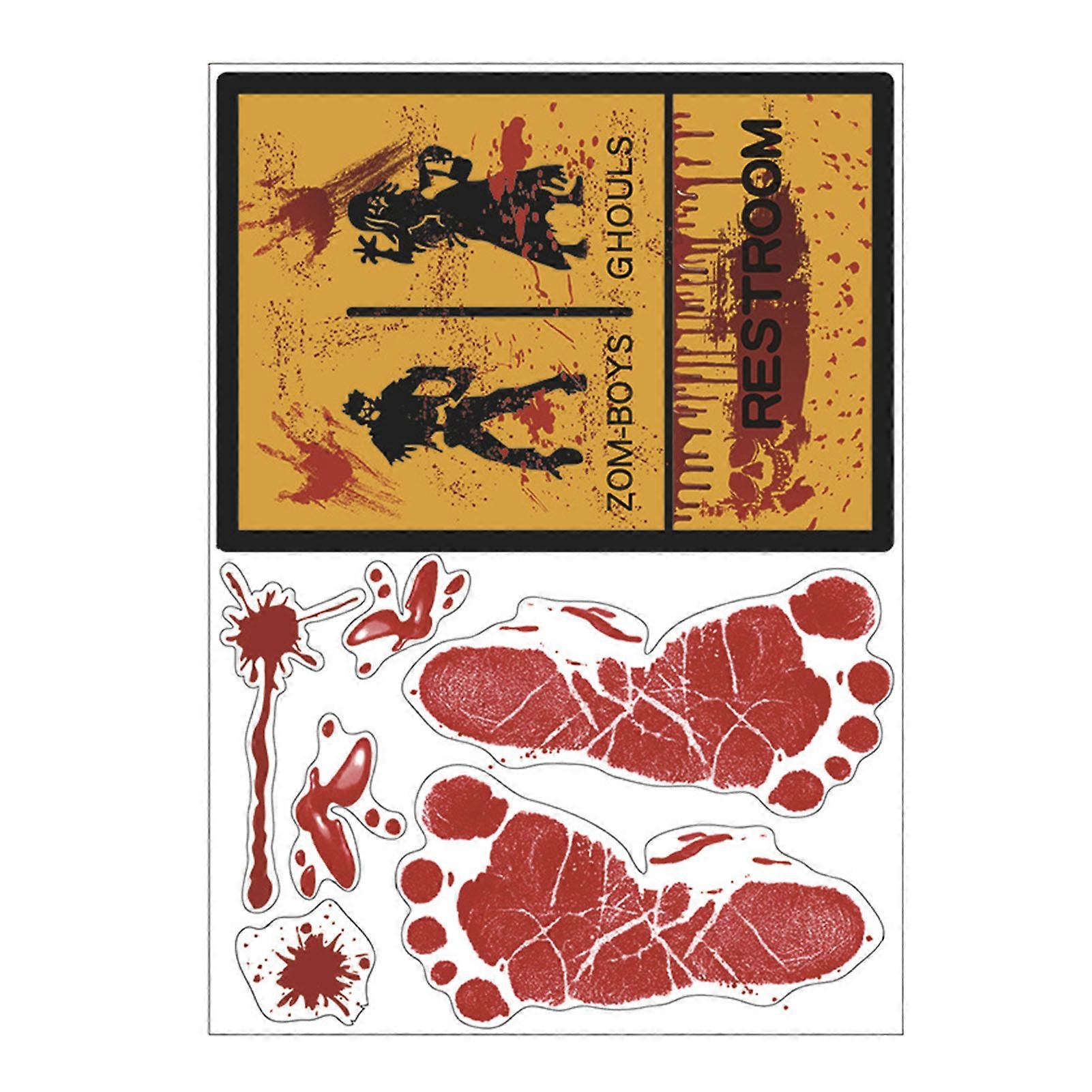 Halloween Scary Wall Sticker Red Handprint Footprint Cutter Skull Waterproof PVC Self-adhesive Living Room Bedroom Wall Art Decoration Decal Qinghai