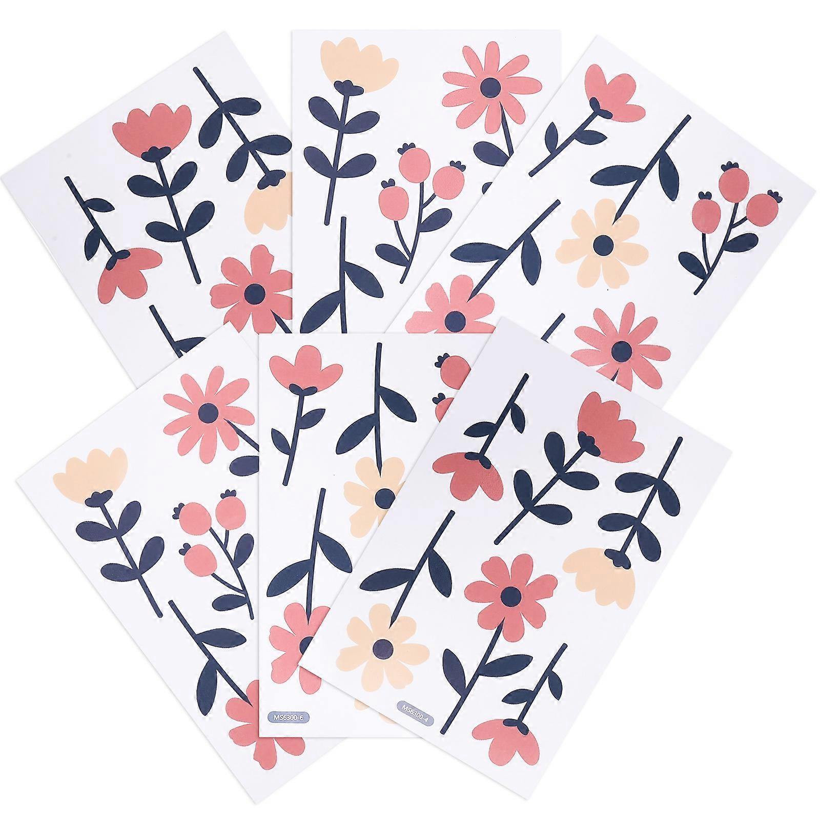 Cute Flowers Wall Sticker 1 Sheet Floral Decor For Living Rooms Bedrooms Assorted Adhesive Decorative