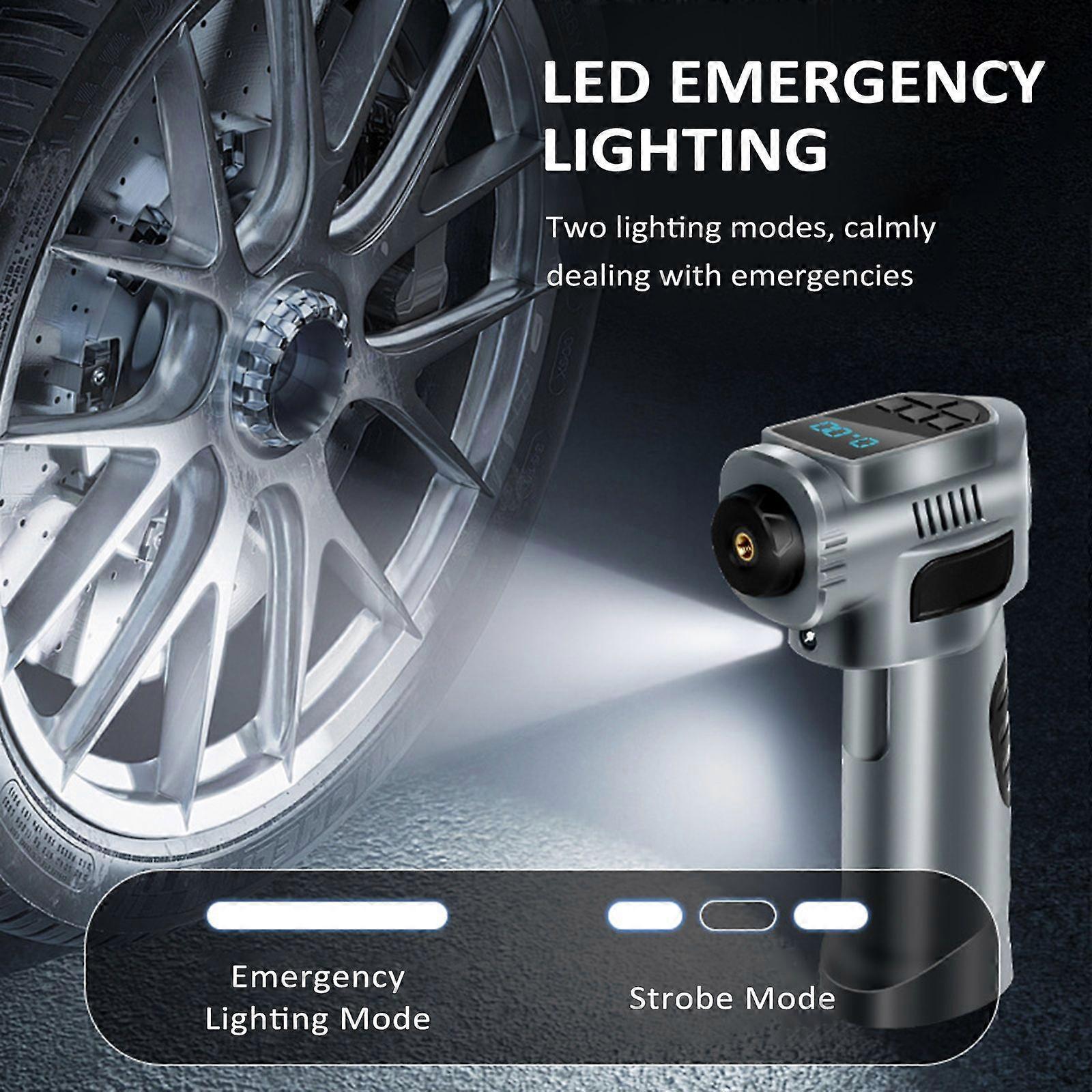 Tire Inflator Portable Air Compressor, 4~in~1 Cordless Electric Air Pump, 8000mAh Jump Starter and Air Compressor with Emergency Light for Car, Motorc