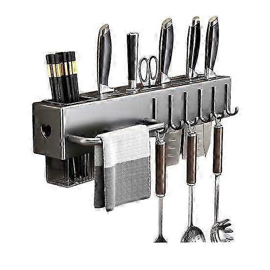 Wall-Mounted Cutter Storage Rack Carbon Steel Cutter Holder Organizer with Chopstick Spoon Fork Holder Load Capacity Utensil Organizer 2025
