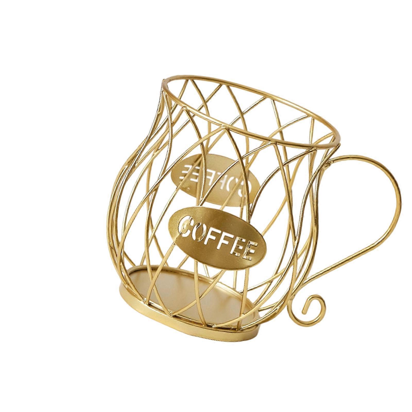 Round Base Coffee Storage Rack Metal Wire Coffee Pods Dispenser Coffee Station Organizer for Countertop Storage Basket Gold
