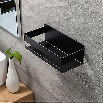 No Drill Self-Adhesive Shower Shelf, SUS304 Stainless Steel Bathroom Organizer Rustproof Wall Mount (Black)