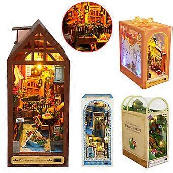 מדף פינת ספרים משודרג חדש, פאזל עץ תלת מימדי, בית בובות, קישוט בית מיניאטורי, מתנות לחג המולד