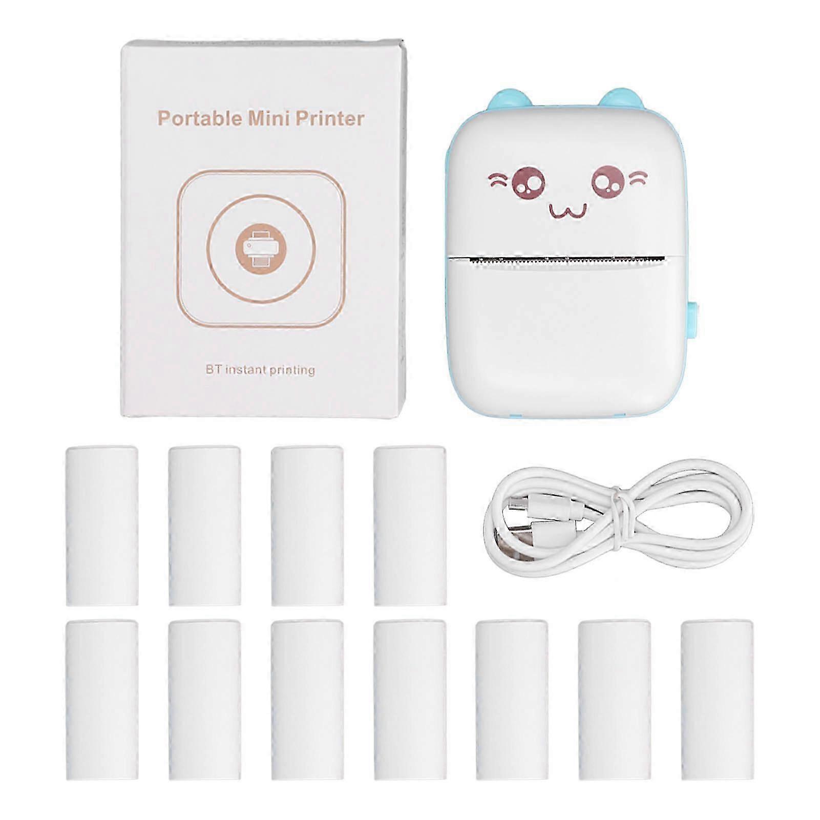 Thermal Printer USB Charging 200dpi Resolution Bluetooth Connection Portable Mini Picture Printer with Printing Paper Blue