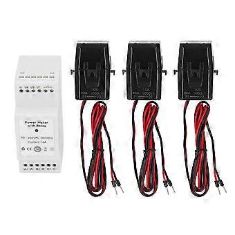 Home Energy Meter 90‑250VA 3 Phase Current Voltage Amperage Energy Meter with 3 Clamp Current Transformer