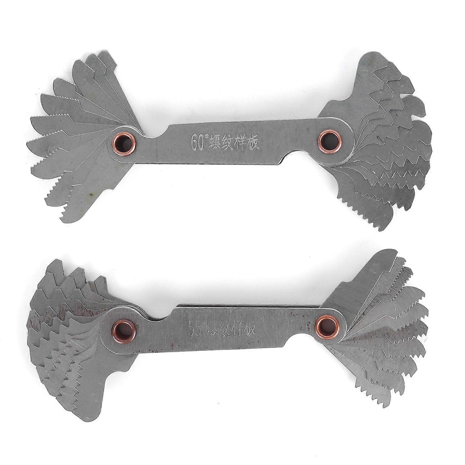 2Pcs Thread Gauge Metric 60 Imperial 55 Stainless Steel 20 Blades Screw Pitch Measuring Tool