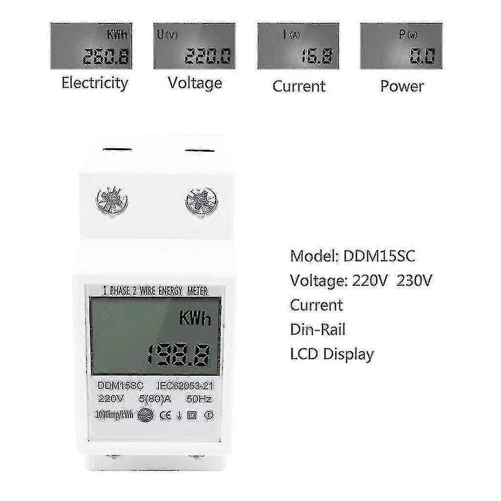 Digital Electricity Meter 220v 5(80) A Digital 1 Phase Din Rail Energy Meter