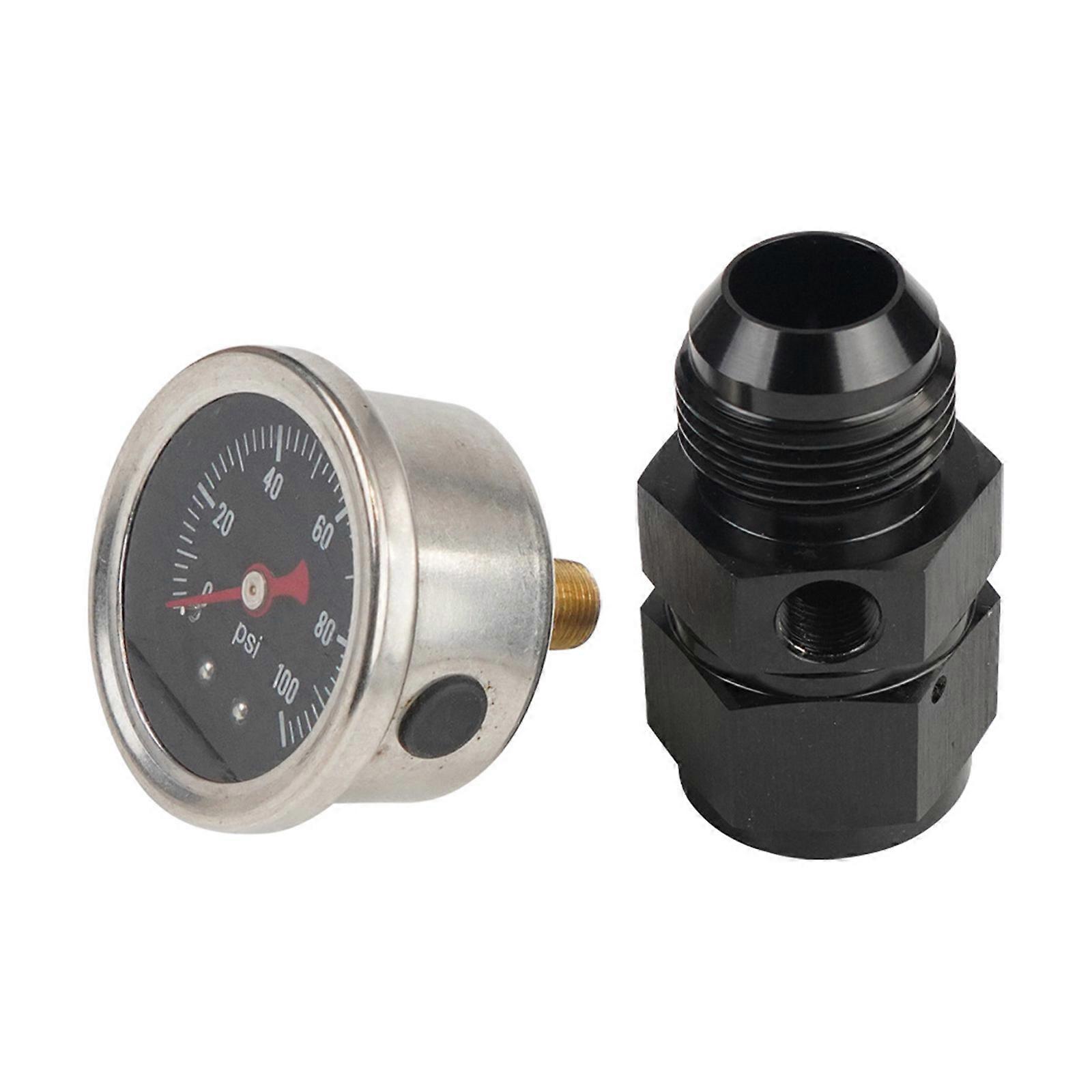 Fuel Pressure Gauge with 4AN Fuel Pressure Take Off Fitting, 0-100Psi, 1-1/2" Black Dial, 1/8"NPT Center Back Mount