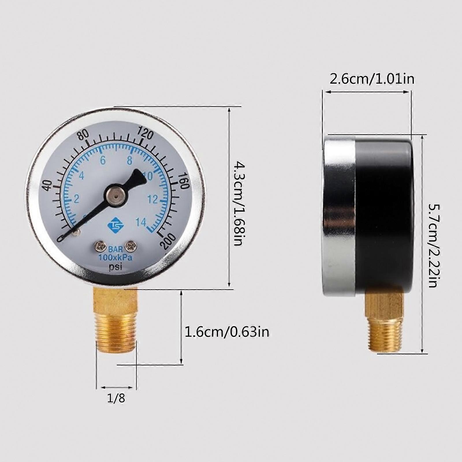 Mechanical Pressure Gauge 1/8 inch NPT Pressure Gauge for Air Oil Water Range 0-200psi 0-14bar High Accuracy Gauge