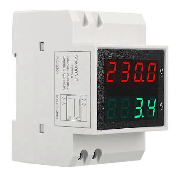 Voltmeter Ammeter 4-Digit Display DIN Rail Mounted Single Phase Voltage Current Meter 0.1‑99.9A AC80‑300V.