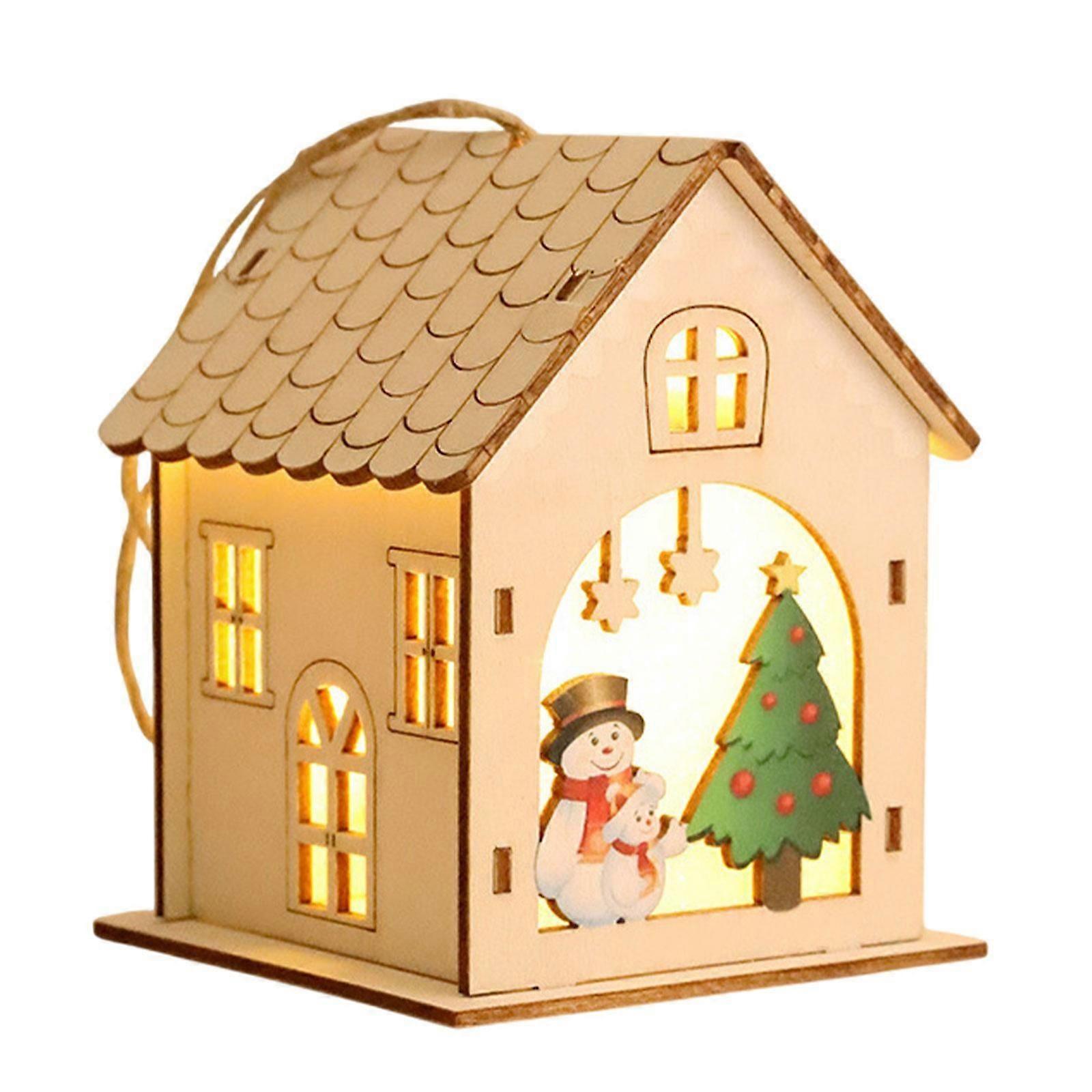 Lighted up Christmas Village House Snowman Xmas Xmas Tree Hanging Decoration