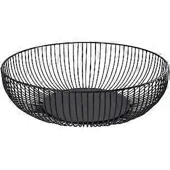 Modern 11 Inch Round Metal Wire Fruit Bowl Basket Holder Stand for Kitchen Decor - Black