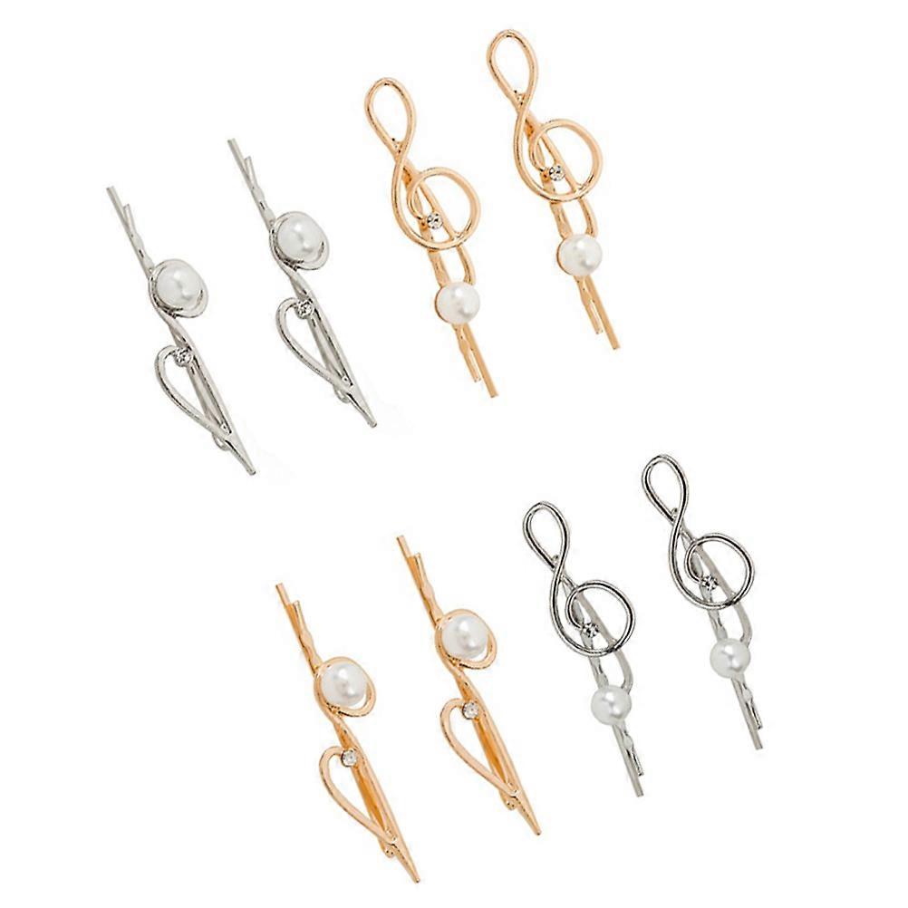 Music Note Hair Clip Tiny Hair Clips Metal Imitation Pearl Inlaid Barrettes for Women Girls Various Occasions 5.1x1.6x1cm 8Pcs