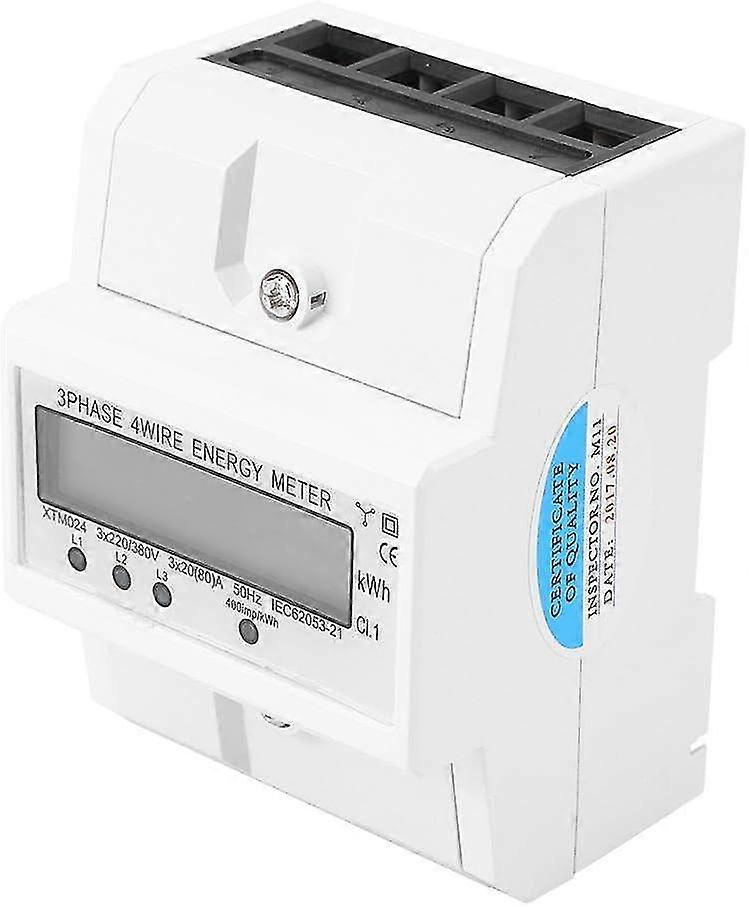 Electric Meter, Three Phase Four Wire Digital Lcd 3 X 20 (80a) Din Rail Electric Meter Energy Meter