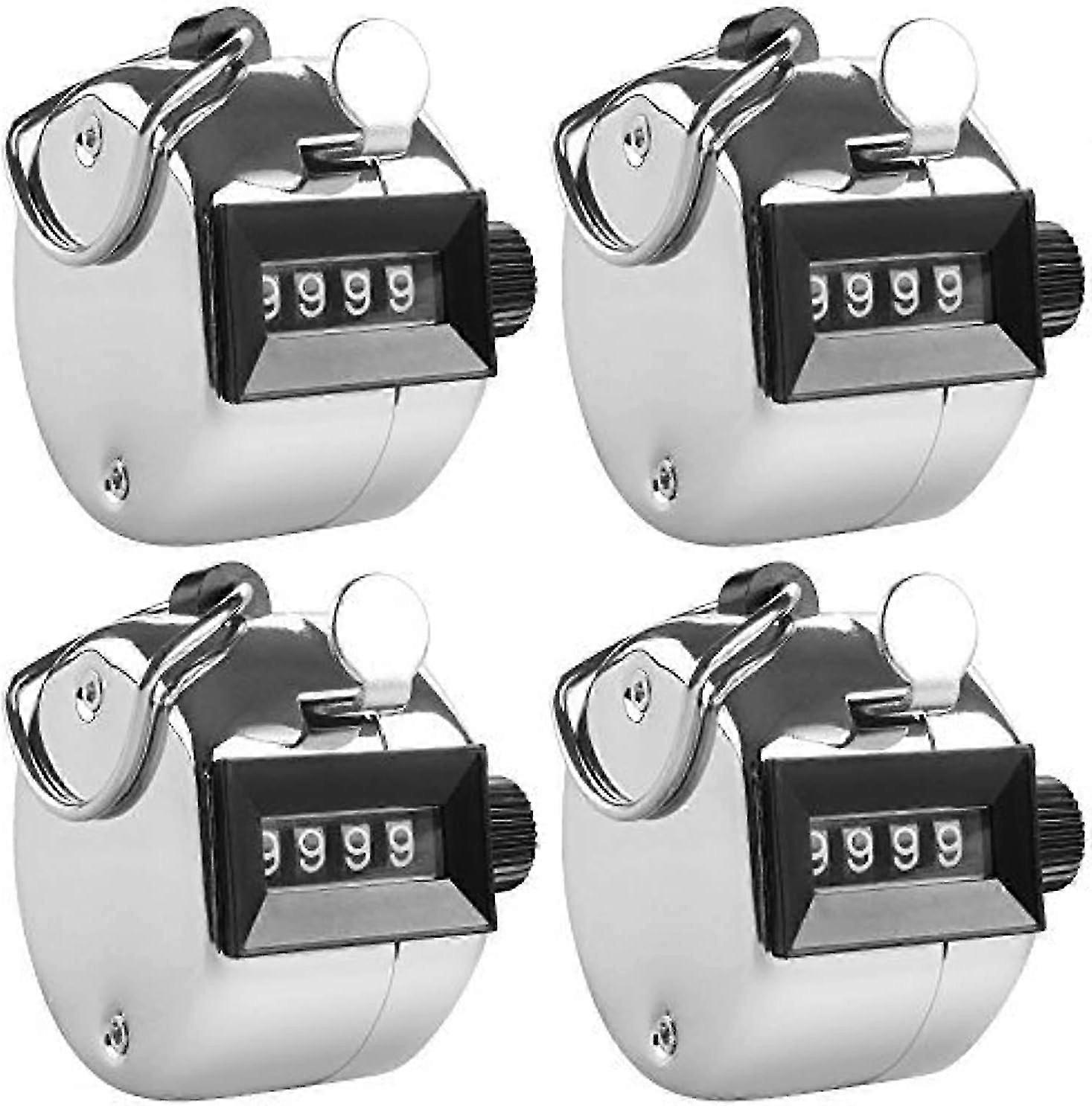 4 Digit Manual Counters, Set of 4 Mechanical Hand Numerators with Ring Hoop Finger Holder for Sport Golf Step Count - Silver