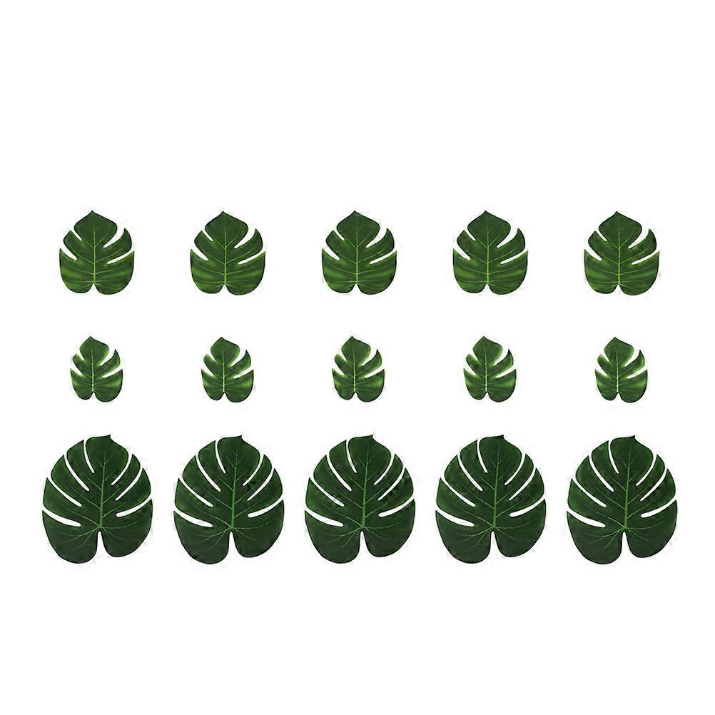 Artificial Monstera Leaves 15 Pcs Leaf-Shaped Fake Plant Landscape Decor For Indoor Outdoor Decoration Green 8 Inch
