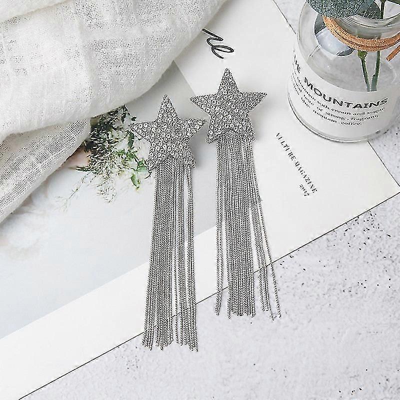 Mwsonya New Korean Personality Rhinestone Pentagram Long Tassel Pendant Earring Elegant For Women Luxury Earring Jewelry Gift