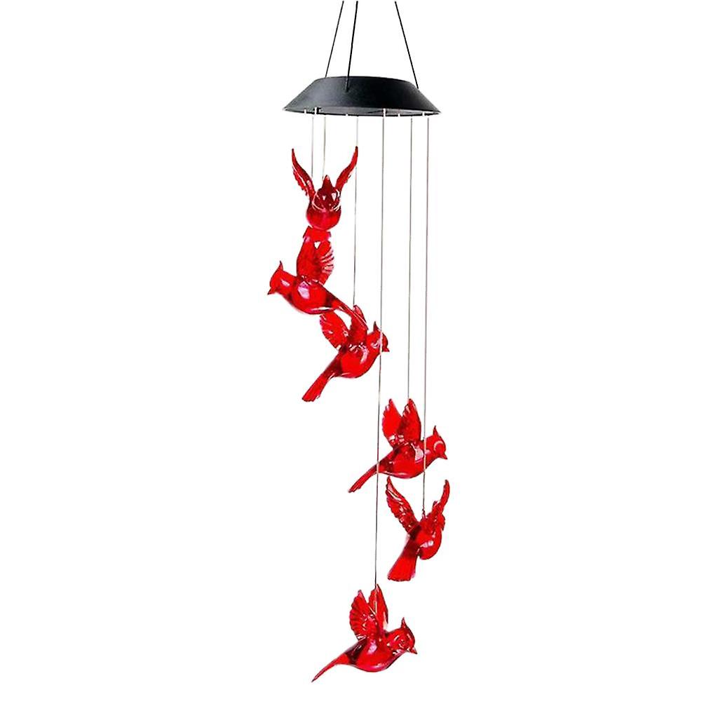 Solar Powered LED Red Cardinal Bird Wind Chime Light Garden Yard Decor