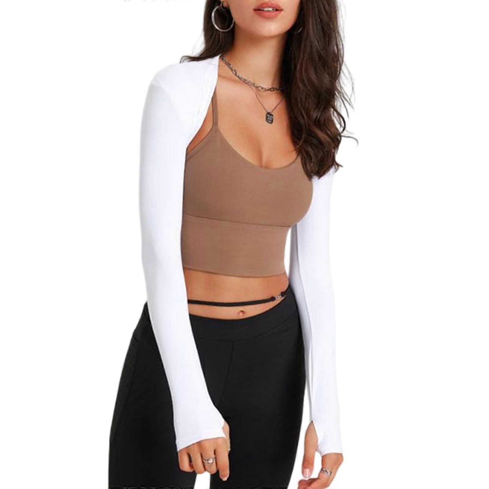 Solid Yoga Shrug Crop Tops for Women Open Front Crop Cardigan Lady Yoga Arm Sleeve Cover Summer Sun Protection Clothing White XL