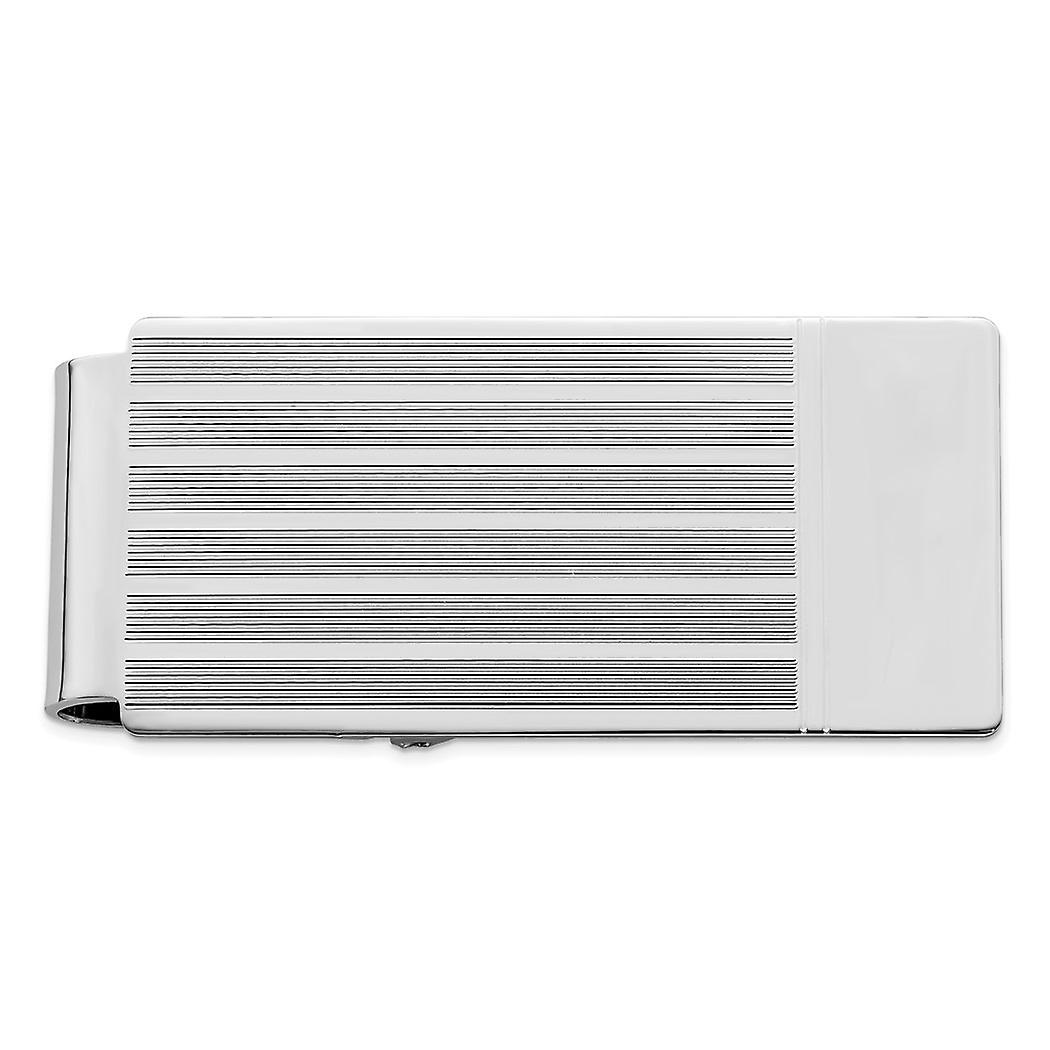 Solid Polished Patterned Engravable (front only) Silver Plated and Rhodium Etched Lines Hinged Money Clip 50x23mm Wide-M