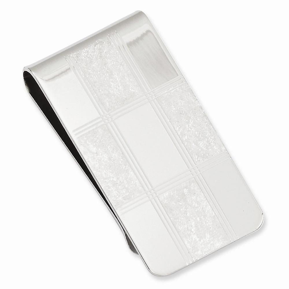 Solid Polished Patterned Rhodium Plated Four Square Engravable Money Clip 50x22mm Wide-Money-Clip for Men
