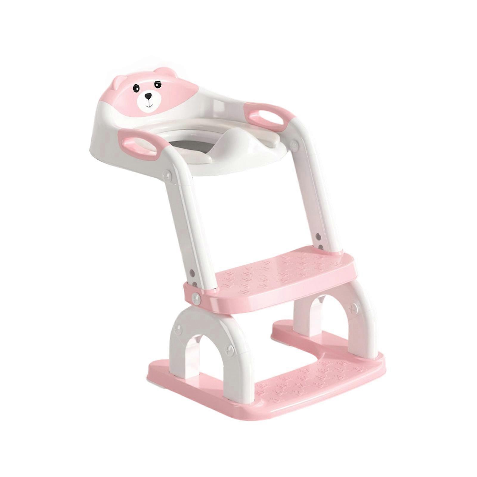 Ergonomic Toddler Potty Training Toilet Seat Adjustable Height 10 Gear Slip Resistant Steps Safety Handle Unisex Pink Color