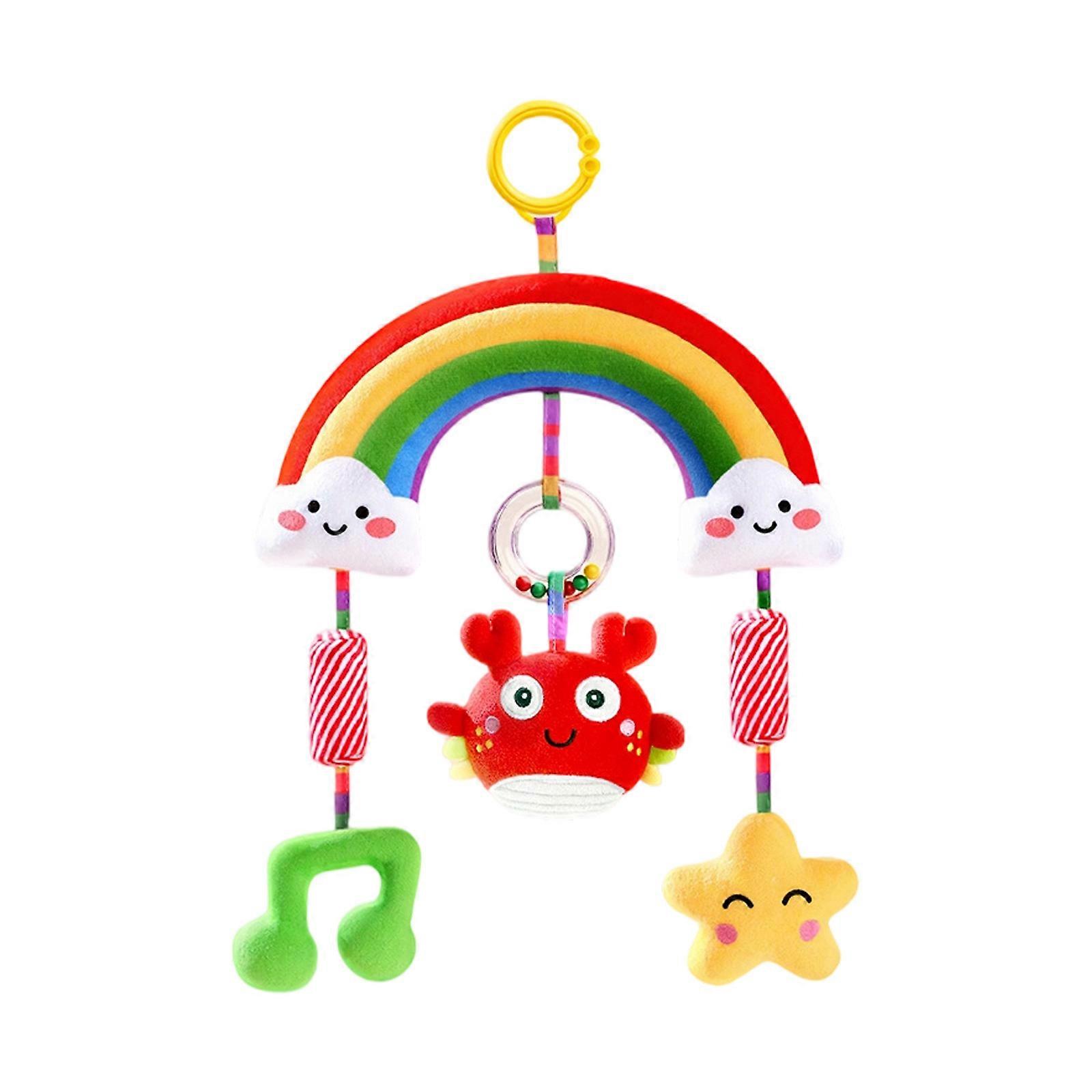 Baby Car Seat Stroller Mobile Rainbow Shape Hanging Rattle Pendant for Infant Road Trip Sensory Visual Development Multicolor