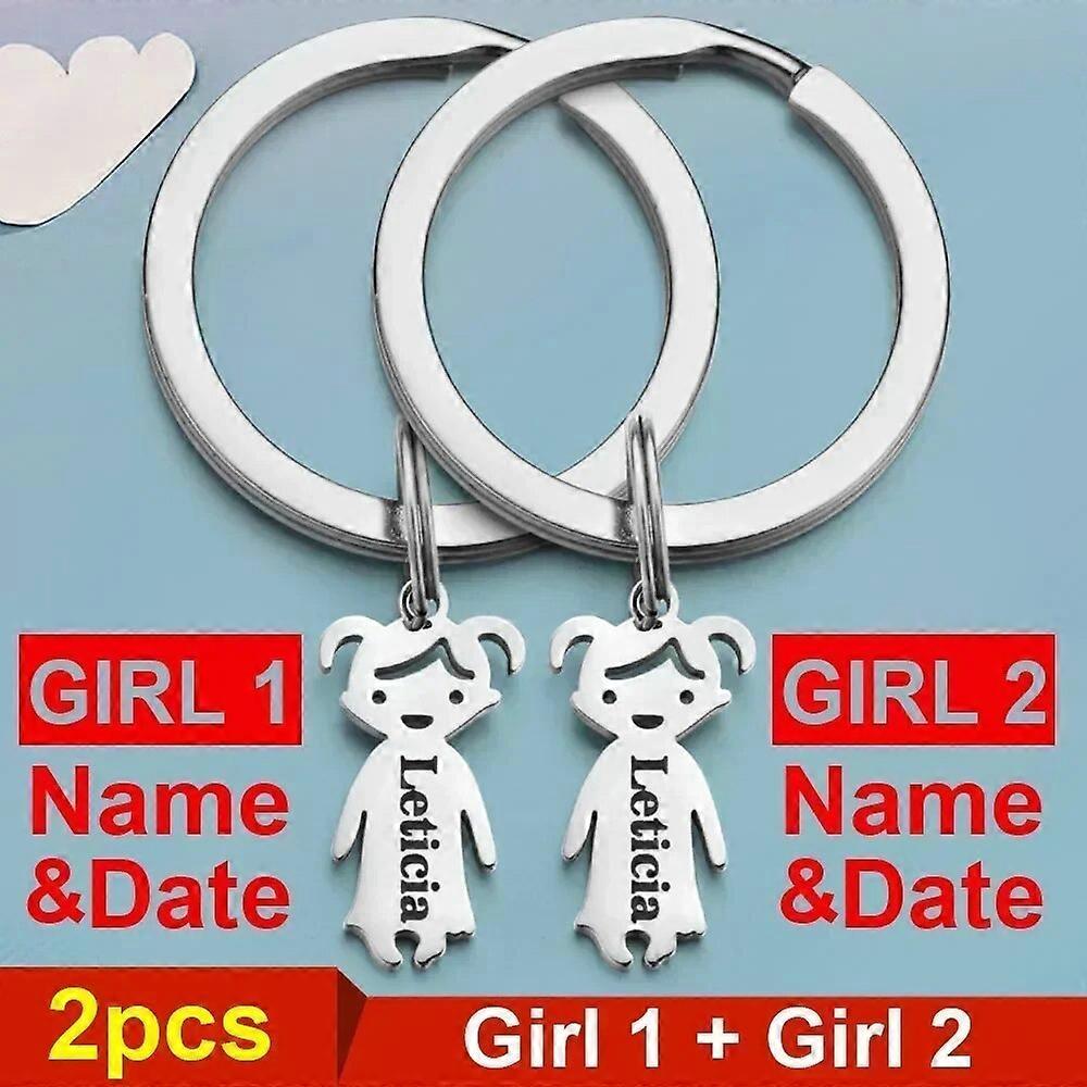 Personalized Custom Customized Baby Keychain Family Gift Name Date Boys Girls Newborn Women Couples Keyring Stainless Steel