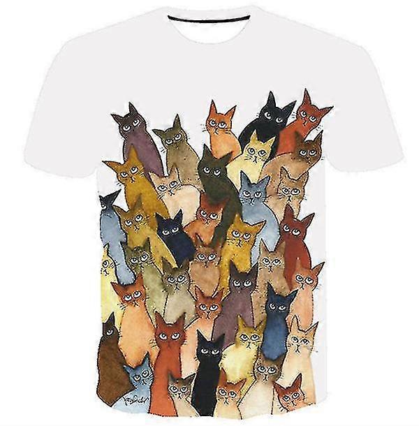New Brand Men's And Women's Animal Series Digital 3d Printing Short-sleeved T-shirt Cartoon Cat Multicolor Round Neck Bottoming Shirt