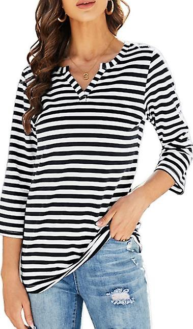 New Women's Brand V-neck Striped Three-quarter Sleeve Loose Casual T-shirt