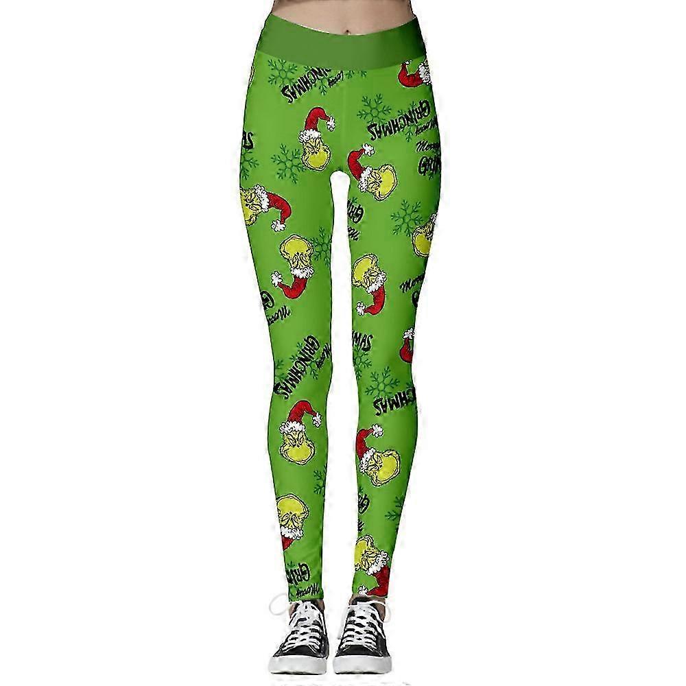 Women's High Waist Christmas Leggings Striped The Grinch Snowflake Printed Holiday Pants