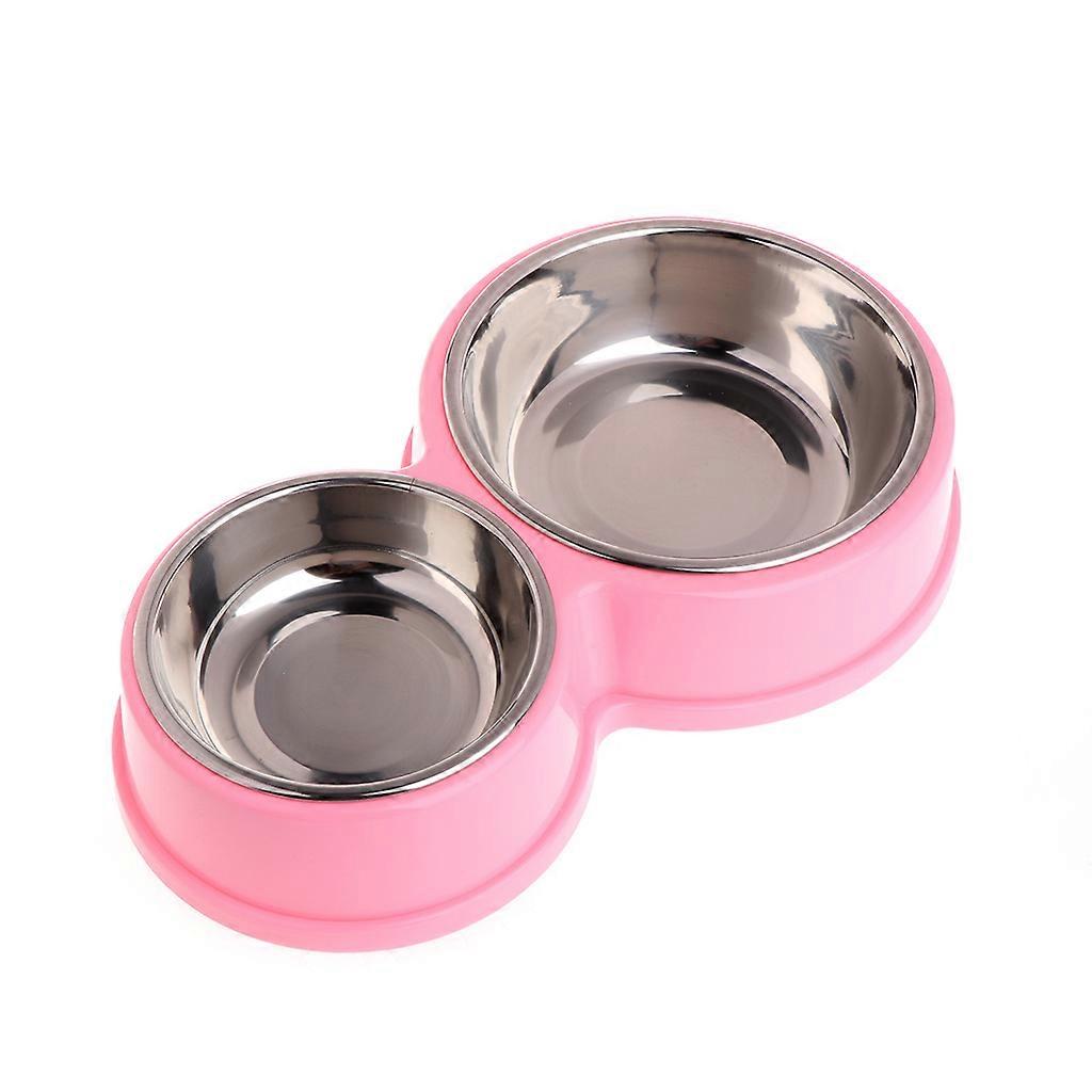 Pet Feeder + Waterer for Cat Stainless Steel Bowl Anti-Leak Water Fountain 2 in 1 Pet Tableware Dog Water Feeder Pink