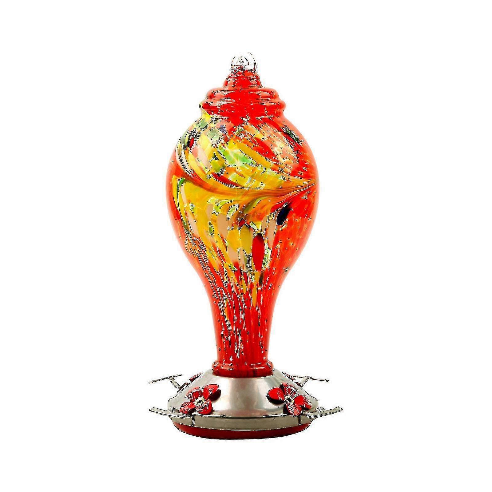 Hummingbird Water Feeder Flower Bird Feeder Painted Glass Hummingbird FeederProduct Description: ATTRACT MORE HUMMINGBIRDS: The bright color and style of the glass bottle make the hummingbird feeder more attractive for hummingbirds, 5 flower feeding ports for hummingbird to rest and drink HANDMADE BLOWN GLASS: Each product is individually blown and hand-finished by skilled artisans. The pigment is embedded in two layers of glass and won't fade and damage EASY TO CLEAN: This clear glass feeder is a breeze to clean, just unscrew the bottle from the base - it's that easy EASY TO FILL NECTAR: Featuring clear glass, wide-mouth reservoir and two-part base makes seeing and refilling nectar simpleFeature:material: GlassThe package contains:1Bird feeder Note: Due to the light and screen setting difference, the item's color may be slightly different from the pictures. Please allow slight dimension difference due to different manual measurement. Sold by-YJL official store