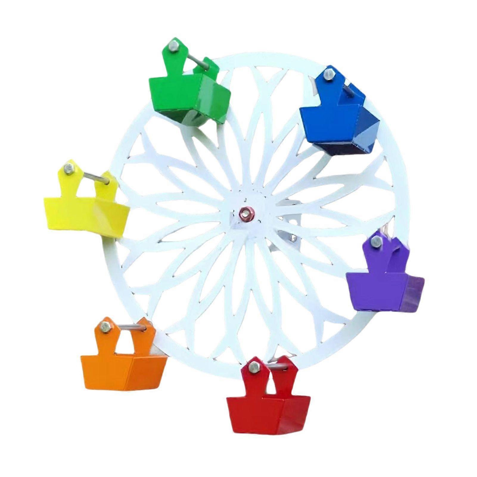 Sky Wheel Bird Feeder with 6 Barrels Large Capacity Outdoor Yard Decoration Outside Rotatable Ferris Wheel Metal Hummingbird Feeding Device