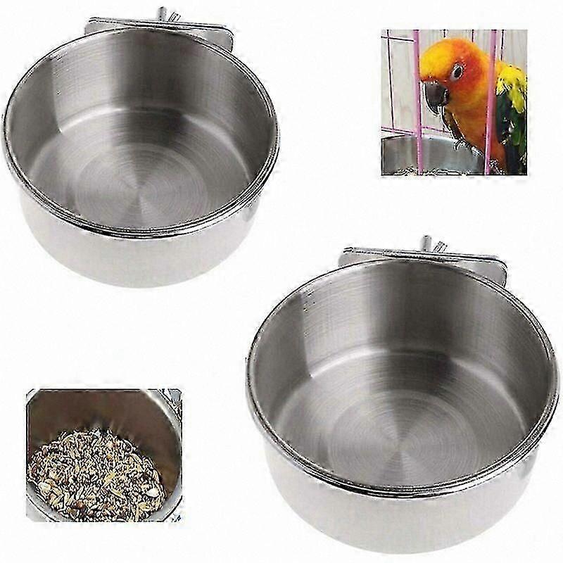Durable Metal Bird Feeder with Fixed Bowl for Hanging Cage Water and Food Accessory 2 Pack for Avian Pets